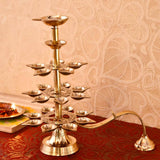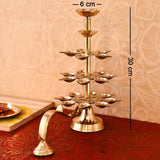 | This traditional Diya with multi petal diyas is specially designed to perform aarti. This detachable sturdy brass deep stand is made in steps with an arrangement of diyas . The small deeps resemble flower petals and look exceptionally beautiful when lighted up. Its solid handle provides the perfect grip to the diya. |