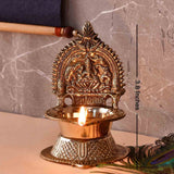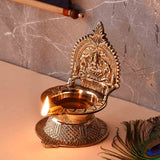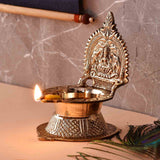 | This brass Lakshmi diya is perfect for pooja . Diya Made with grandeur, the diya has Lakshmi, goddess of wealth and fortune, inscribed in the centre. Lakshmi ji sits on lotus and is flanked by elepants on both sides. Considering the regular size of the cup, the diya illumniates for considerable time. |