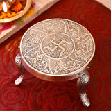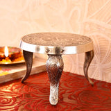 This beautifully engraved  brass stand is an outstanding puja accessory. The stand uses high grade premium brass that retains its shine for long. The three legged stand (tripod) is used to keep puja idols, accessories and deities. It has a swastik engraved on the round top