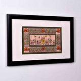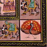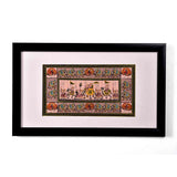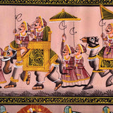 Painted in green and lavender with the royal animals in the border this procession painting is looking amazingly beautiful. The power and the pompous lifestyle of the King has been illustrated through these paintings. These paintings would add value to your status as it looks extremely alluring.