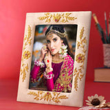 Embrace your best memory captured in a photo and preserve in our artistic photo frame. This photo frame is artistically designed. Delicate zari work is done with a golden thread making the frame looking more elegant. This glorious looking photo frame is an excellent gift idea