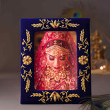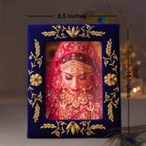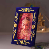 Freeze your best memory with our artistically designed photo frame. The photo frame has zari work done and is handwoven. The golden thread work done with the blue background gives a glorious look to the frame. This photo frame could be the best gift for your loved ones.