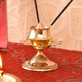 The beautifully designed brass incense holder has a floral plate in the middle. The rings of etched work in the base and the floral cut on the top of the holder makes the incense holder look striking.