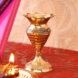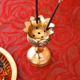 Make your puja ritualistic with this beautifully designed auspicious brass agardan. The elegant incense holder has a conical shape with rings engraved. A round of etching on the top and bottom makes the holder look striking. The top has a floral pattern where multiple incense can be inserted.
