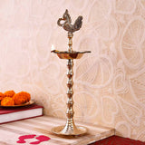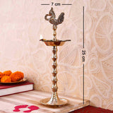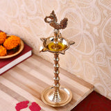 Get this elegant Brass deepak for your home and office puja rituals. The diya is splendidly sculptured with a bird on top. The bird is artistically engraved to make the deep look stunning. Multiple battis can be lit on the deep. When illuminated, the diya exudes radiance.